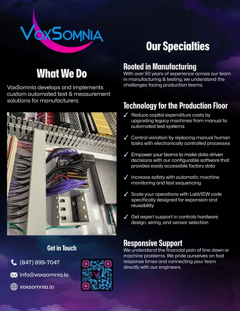 Custom automated test and measurement systems for manufacturing.